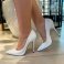Seu bico fino e decote no tamanho perfeito, confere elegância, ao mesmo tempo que o salto fino confere poder.