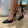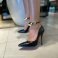 Seu bico fino e decote no tamanho perfeito, confere elegância, ao mesmo tempo que o salto fino confere poder.