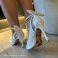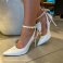 Seu bico fino e decote no tamanho perfeito, confere elegância, ao mesmo tempo que o salto fino confere poder.
