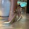 Seu bico fino e decote no tamanho perfeito, confere elegância, ao mesmo tempo que o salto fino confere poder.
